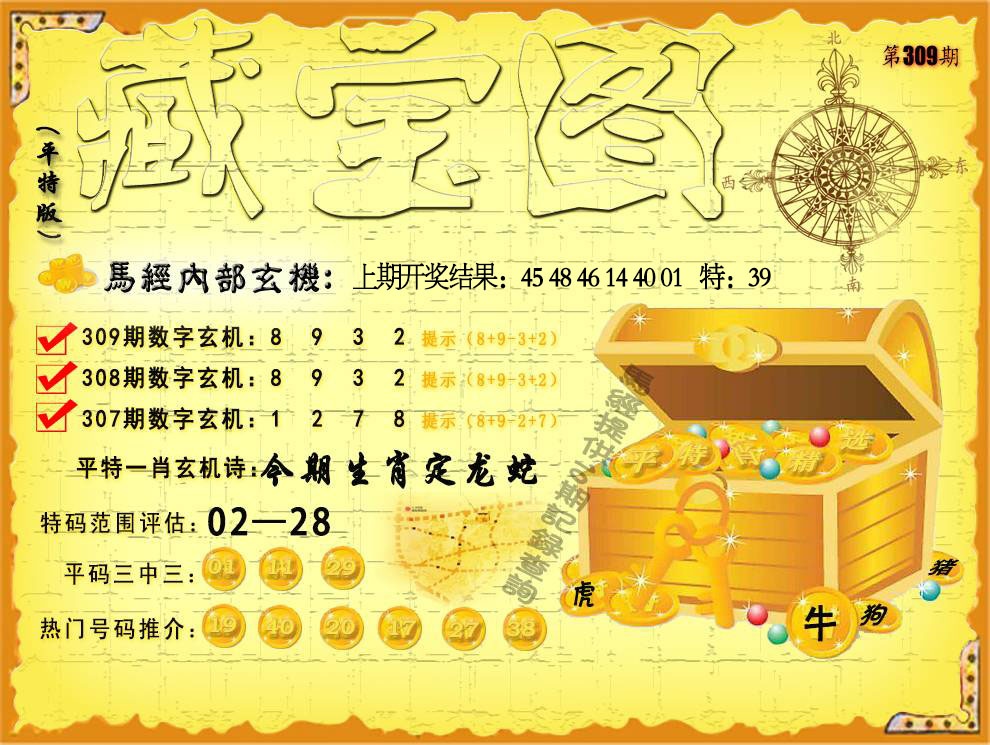 309期:平特藏宝图玄机:【今期生肖定龙蛇】